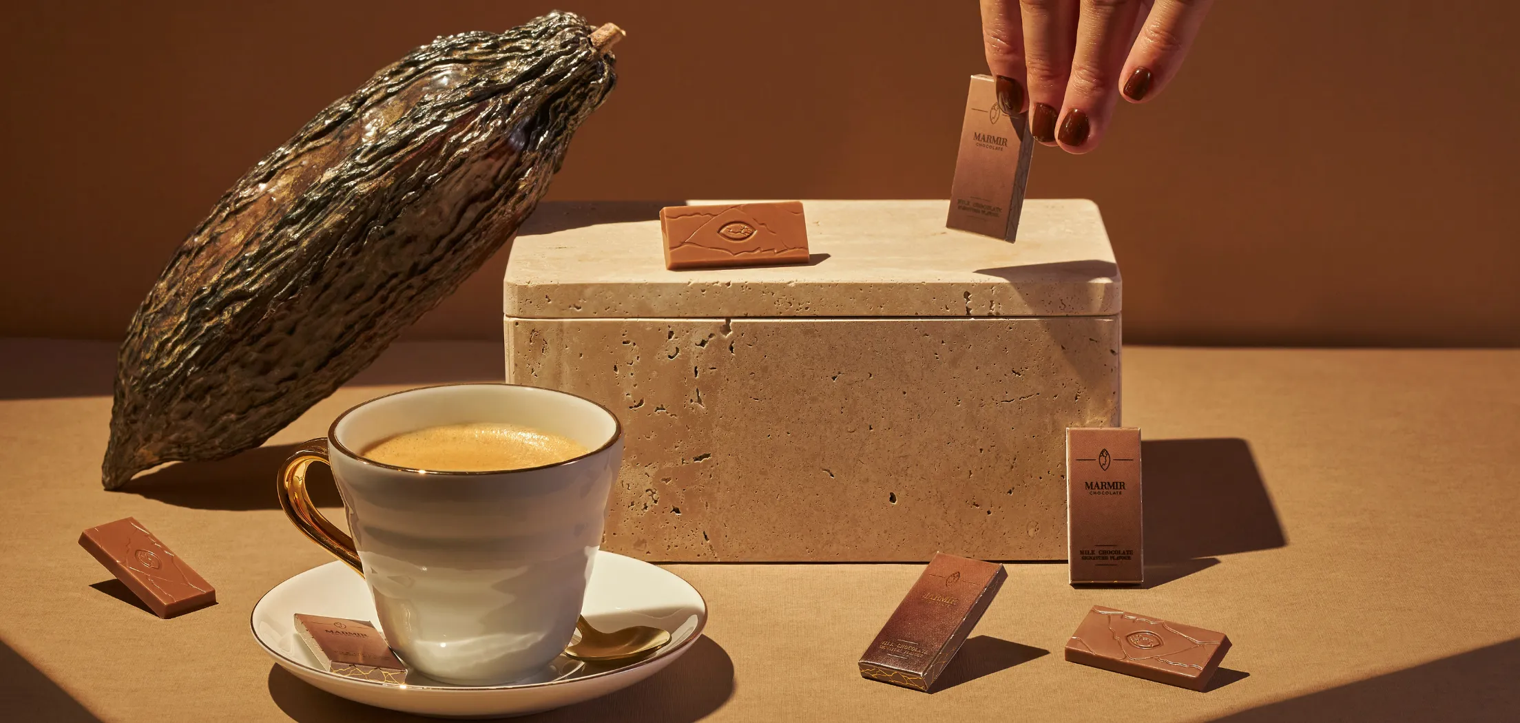MARMIR verwandelt Schokolade in ein Erlebnis. Die Marke spielt auf das Bedürfnis nach Persönlichkeit bei Firmengeschenken ein. Die Schokolade kann für sich allein stehen oder mit anderen Luxusprodukten kombiniert werden – denken Sie an Wein, Kaffeebohnen oder Pflegeartikel. Aber auch solo beeindruckt MARMIR: schlicht, stilvoll und geschmackvoll. Ideal für Unternehmen, die ihre Marke mit Finesse sprechen lassen wollen.